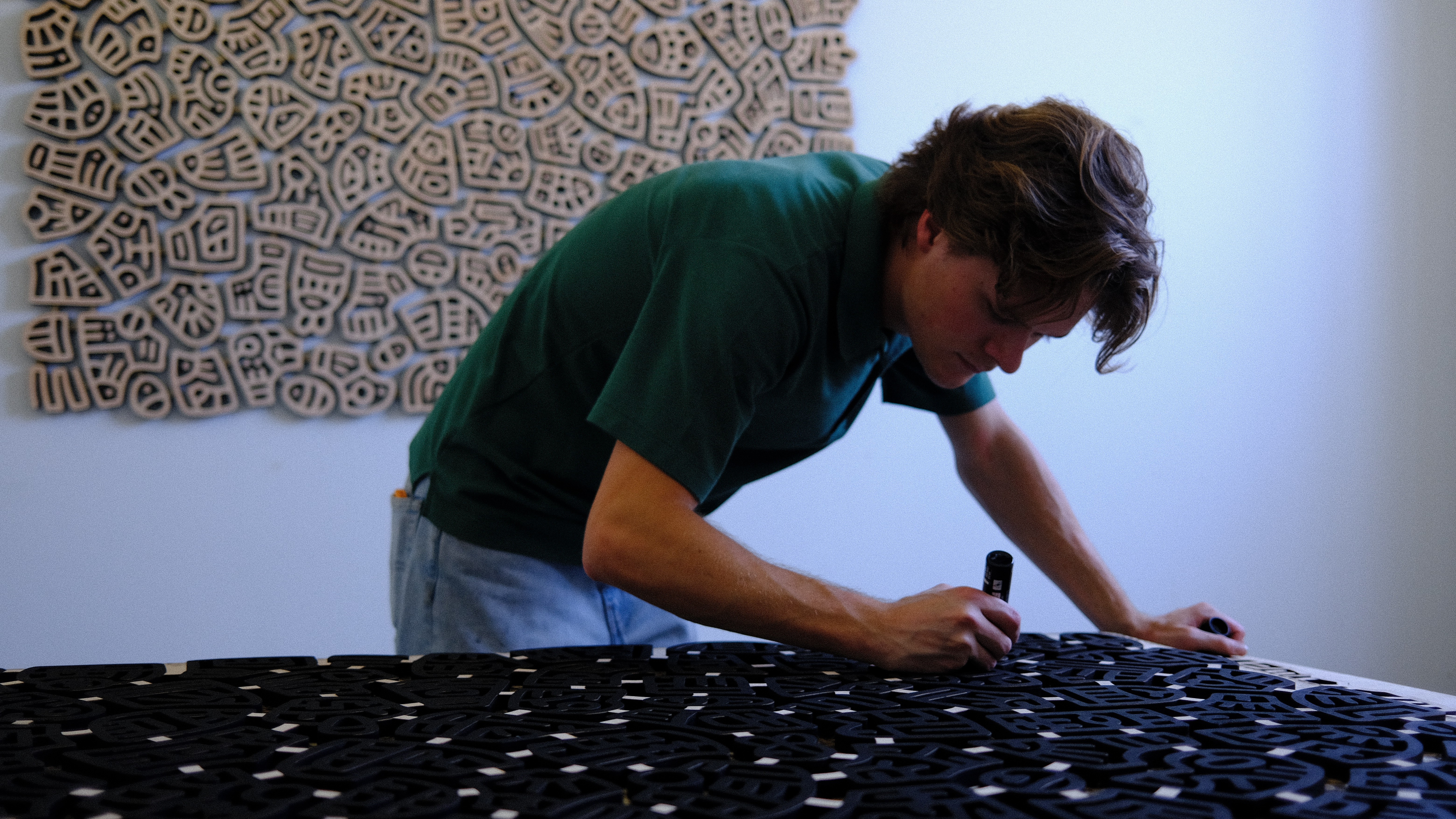 Reynolds’s process bridges drawing, design, and fabrication. Working with materials, from pen and ink to wood, has shaped his understanding of structure, rhythm, and weight. Each discipline informs the next, creating an ongoing dialogue between surface and form. Through this exchange, Reynolds continues to refine how his marks occupy and define space.